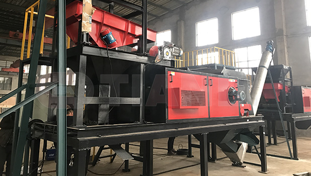 根據客戶的物料情況,我們推薦上述配置。物料通過振動給料機進入磁滾筒,先分選出廢鋼和廢鐵,不銹鋼,之后物料進入渦電流主機,進行廢鋁等有色金屬的分選。分選兩次分選率可達到97%以上。